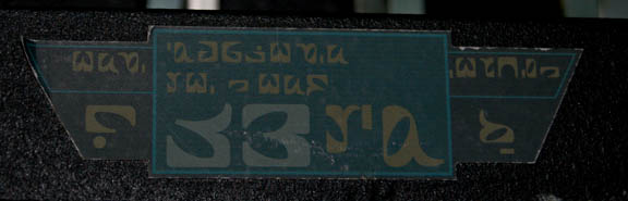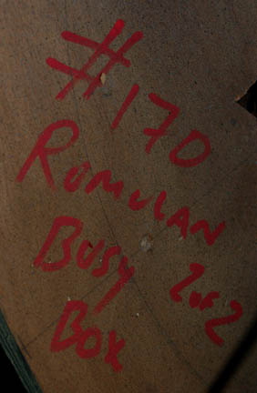 Description: A piece of set dressing featured in the Romulan Interference/ Aenar story arc of the fourth season of Star Trek: Enterprise. This item is part of the circuitry aboard the Romulan Telepresence controlled Drone ship and consists of a black, roughly hexagonal frame that has three identical panels that all feature two predominant parts; the first part is a piece of smoked acrylic with a graphical application of Romulan iconographic symbols adhered to the reverse in the LCARS-style (Library Computer Access Retrieval System), and the second is a rectangular shape that bulges in the middle with similar Romulan symbols painted onto multi-colored symbols and clear, acrylic nodule accents. Screws on the panels grant access to what is beneath them; in the case of the LCARS-style panels, it grants access to the wiring involved with lighting them. The hexagonal frame was only seen on camera from one side so what would be the other three sides is merely a round, wooden panel. The top has a circular hole in the middle where additional circuitry is inserted, several holes for screws and two groups of three fasteners are found behind the circular hole. A standard, three prong, 110-volt plug powers the electronics and measures approx. 27 X 23 X 30 inches.