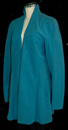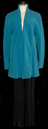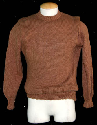 Description: A lot of items featured in various episodes of Star Trek: The Next Generation. This lot consists of one of the trademark “Dr. Crusher” (Gates McFadden) lab coats; a long-sleeved, teal-colored lab coat featuring textured accents, doctor’s smock-style pockets and extra black, uniform trousers. Also included are three of “Wesley Crusher’s” (Wil Wheaton) long-sleeved, woven, brown sweaters; two with ribbon around the neck and another with a sewn in t-shirt. All items were found in their respective sections and possess costumer’s tags denoting that they are as stated.
