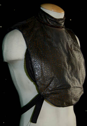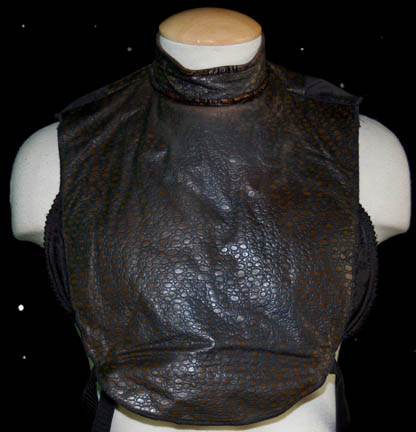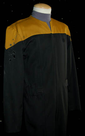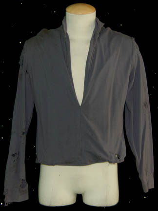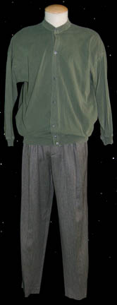 Description: A lot of costumes and costume items featured in various episodes of Star Trek: Voyager. This lot consists of costumes and aspects of costumes for wear by Tim Russ predominantly in the role of the “Voyager” Chief of Security “Lt. Commander Tuvok; a distressed, black, Starfleet uniform jumpsuit featuring Operations Gold division colors around the shoulders, Velcro patch for a commbadge (not included), hoops at the waist for tools, a zip down the front, and an equally distressed, long-sleeved, blue-gray undershirt. Three further sleeveless blue-gray undershirts, matching shorts, a sleeveless, sheer shirt, gray and black speckled trousers, a long-sleeved, button-down, olive-green shirt believed to be the one worn in the two-part episode “Future’s End; a knee-high pair of black leather boots with further leather straps and buckles around them from the episode “Resistance”, a brown, faux reptile skin-patterned vinyl dickie with padding sewn on the chest portion either from the role of “T’Kar” in “Invasive Procedures” or “Mirror Tuvok” from “Through the Looking Glass”. There appear to be sewn in tags or other labels in every item, including the boots that denotes wear by Tim Russ either in Voyager or Deep Space Nine.