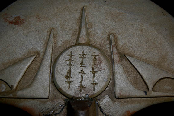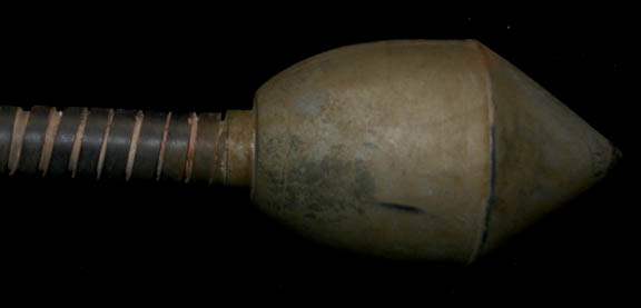 Description: A prop item similar to those featured in the Star Trek: Enterprise episode “Kir’Shara”; wherein the “Enterprise NX-01” attempts to diffuse a stand-off between the Vulcans and Andorians while “Captain Archer (Scott Bakula) and “T’Pol” (Jolene Blalock) search for an ancient Vulcan artifact. The ‘Lirpa’ is a traditional Vulcan sparring weapon used by competing males as part of the mating challenge during “Kal-if-fee” ritual during “Pon farr”; the weapon is made of a reinforced PVC pole with a crescent-shaped rubber blade and a weighted end. The blade has Vulcan markings on it and the entire weapon is distressed to appear earth covered and used. The item measures approx. 54 x 8 inches.