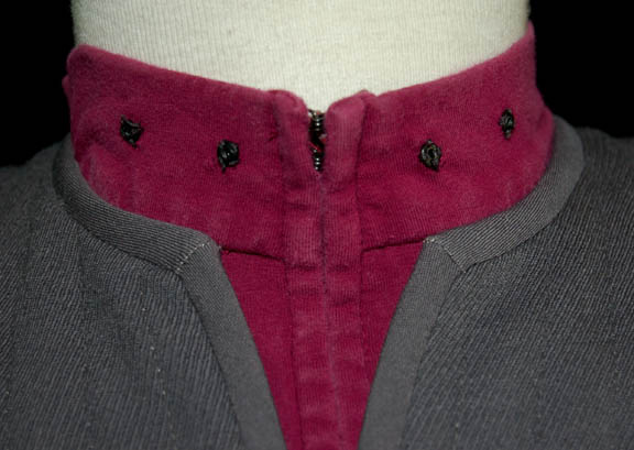Description: A costume featured in the last TNG era feature film, Star Trek: Nemesis; wherein a political coup takes place in the Romulan Empire and the crew of the “Enterprise-E” travel into its heart and “Captain Picard” (Patrick Stewart) finds a familiar face planning the destruction of Earth. This costume is for wear by Michael Owen in the role of the officer who was at the helm for the “Enterprise-E” making its way to Romulus, the battle with the “Scimitar” later, and was finally blown out into space when a torpedo decompressed the forward section of the bridge, “Lieutenant Branson”, and is referred to as the “First Contact-style” Starfleet uniform because it was first used in the feature film of the same name and went on to be the standard; it consists of a long-sleeved, full-length, black jumpsuit featuring blue-gray, quilted shoulders, a Velcro patch for a commbadge (not included), hoops on the waist for tools, a long-sleeved undershirt in Command Red with matching division colors around the cuffs of the jumpsuit. A sewn in tag reads ‘Mike Owens, 11-01, 42,’ and also reads “Stunt” and seems to have been reused as a stunt costume; the costumer’s tag reads ‘Helm Officer Branson, Michael Owen, Nemesis’.