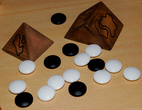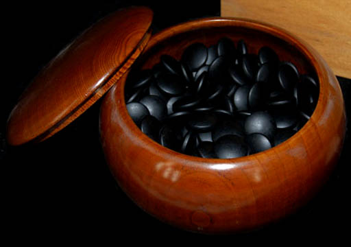 Description: A practical game set featured in the Star Trek: Enterprise episode “Cogenitor” kept in the quarters of “Commander Tucker” (Connor Trinneer). The item appeared in scenes taking place between him and “The Cogenitor” (Becky Wahlstrom). The item is strategy game founded in East Asia consisting of a board with intersecting lines on which are placed black or white ‘stones’. Rules are available on Wikipedia. The prop set is made up of a sturdy, thick wooden board with four strong shaped feet, two bowls filled with black and white beads respectively indicating it to be a traditionally Japanese configuration for floor play. The item measures approx. 18 X 18 X 9.25 inches.
