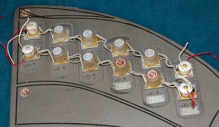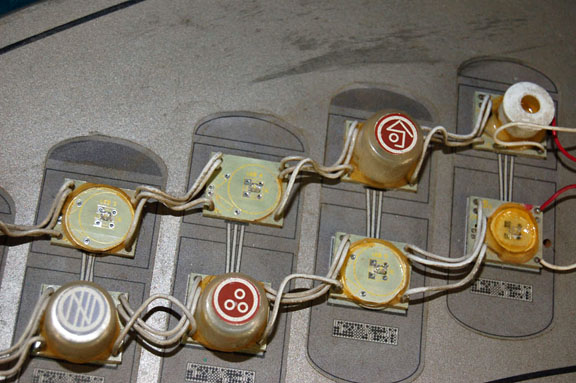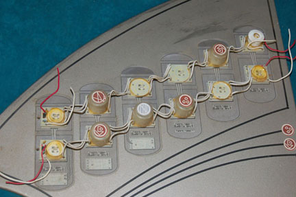 Description: A pair of cockpit controls featured in the Star Trek: Enterprise episode “The Seventh” appearing during scenes in which “Captain Archer” (Scott Bakula) and “Travis Mayweather” (Anthony Montgomery) attempt to gain access to the flight controls of a Vulcan fugitive. The panels are made from shaped wood painted metallic silver with black adhesive detail lines graphical applications designed to suggest hardware with LED panels affixed to the graphics that are covered by multiple plastic faux buttons. The buttons are adorned with graphics meant to represent alien lettering. The untested LEDs are all connected via wires that are not connected at their ends. Some of the ‘buttons’ are missing due to time and storage conditions, some are loose. The items measure approx. 18.5 X 12 and 18.5 X 16 inches.