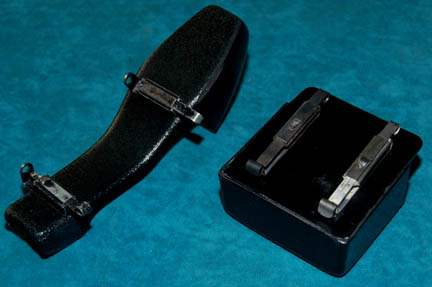 Description: A lot pair of black vacuum formed plastic holsters featured in Star Trek: The Next Generation, Deep Space Nine, or Voyager. The items both have two metal slide clasps on their reverse for attaching to gear loops sewn in to costumes, and black felt interior lining for no scratch protection of resin prop. One holster is for a Starfleet style Type-2 phaser and the other is for a tricorder (sold separately). The trivorder holster measures approx. 3.5 X 2 X 3.75 inches while the phaser holster measures approx. 8 X 2.25 X 2.25 inches.