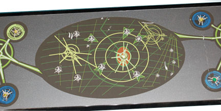 Description: STAR TREK: ENT “XINDI STE DRRESSING LOT” FROM “THE HATCHERY” A lot of set dressings featured variously throughout the third season of Star Trek: Enterprise but specifically in the episode “The Hatchery”; wherein the “Enterprise NX-01” finds an abandoned Xindi-Insectoid ship with a hatchery of unhatched eggs that “Captain Archer” (Scott Bakula) becomes alarmingly protective of. This lot of set items consists of five small, gray, poster board signs with red and white Xindi iconographic script on them, an elongated, black, foam-core, trapezoidal shape featuring a silver-colored graphical application, dark-gray details, a row of five circular appliqués in either green or blue, with white Xindi iconographic figures in the middle and clear acrylic nodules; further circular shapes but with much more pronounced Xindi symbols and blinking green lights activated by a switch at the top and powered by three AA batters all located on the reverse. A triangular piece is made with the same black foam core, a blue/gray-colored graphical application featuring further Xindi iconography with untested banks of lights along a multi-colored “tentacle” that extends out from it. The backside consists of the wiring for the lights with three wires leading out from it and also has residue on the surface from use in the episode “The Hatchery”. The last piece is a long, rectangular of the same black foam core and silver-colored graphical application featuring an impressive central black graphic with a green grid, numerous Xindi symbols of various sizes, and a clear acrylic nodule in the middle; in addition, there are further Xindi symbols with four smaller circular objects radiating out from them all with similar nodules as well. The items measures approx. 7 X 7.5, 17 X 17, 21 X 11, and 30 X 10 all with a negligible height.
