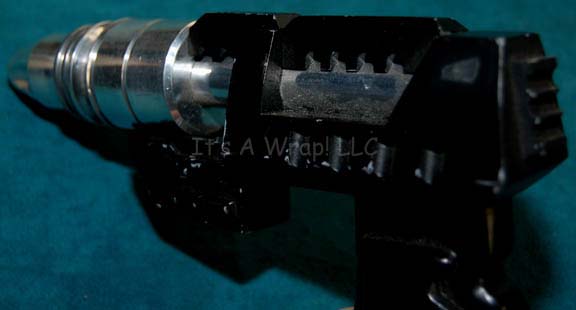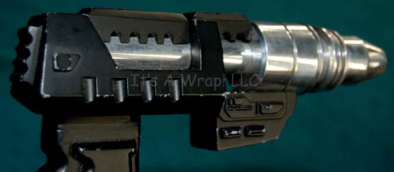 Description: A prop hand weapon featured in the Star Trek: Voyager episode “Think Tank”. The item is an energy pistol favored by the Hazari bounty hunters working for “Kurros” (Jason Alexander) in the episode. The prop is made from black colored high quality cast resin with a unique forward sweeping hand grip and silver colored metal components for the emitter. The item was worn in a chest holster on the actors in the episode and the item measures approx. 4.75 x 7.75 X 1.5 inches.