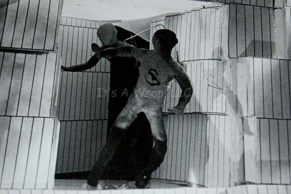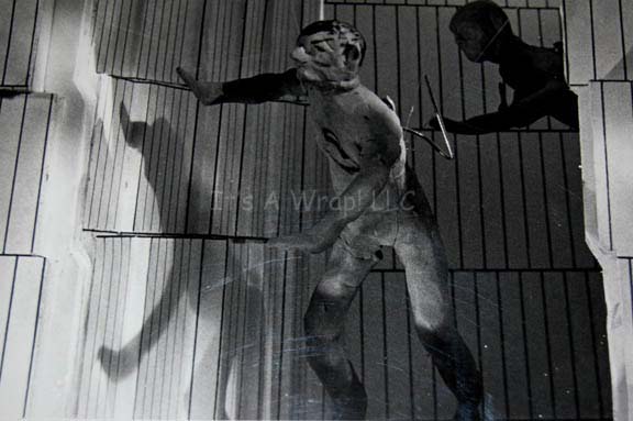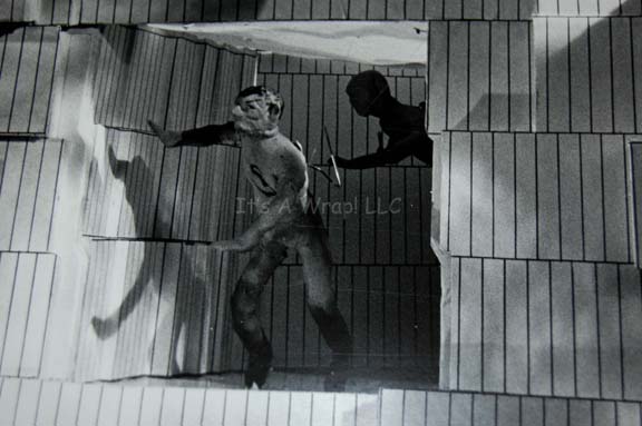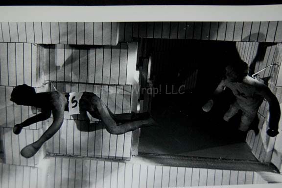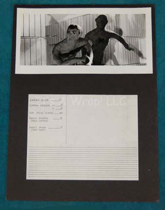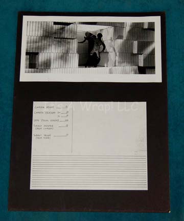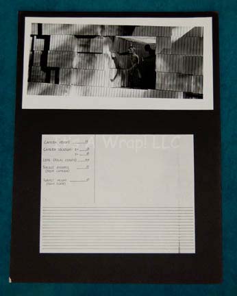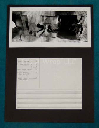 Description: A set of five differing panoramic photographs adhered to five different black poster boards made for Star Trek I: The Motion Picture. The items depict the progress of plasticine figures representing “Kirk” and “Spock” as they move from an opening in the Memory Wall of the “V’Ger” probe, a scene in the film that was replaced by Spock’s mindmeld with V’Ger. These high quality black and white photos show with great detail the figures of Kirk and Spock as they float through high contrast three dimensional models on metal braces, each labeled with a corresponding letter for recognition, “K” for Kirk and “S” for Spock, even though the Spock figure has trademark Vulcan eyebrows painted on. One of the photographs adhesive elements has degenerated, yet it is still applied to the board on the viewer’s right side. These story boards are believed to have been put together by the company “Robert Abel & Associates”, the first special effects team attached to Star Trek I: The Motion Picture and they measure approx. 15 X 20 inches.