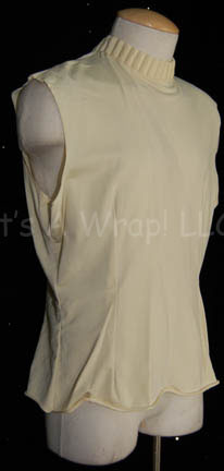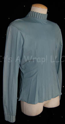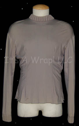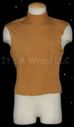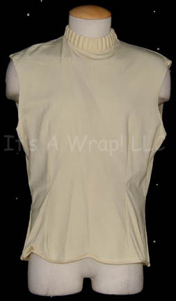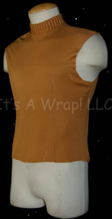 Description: A lot of five differing, non-character specific undershirts for wear with Starfleet uniforms of the motion picture era. The costumes all feature the ribbed neck style collar and two of them are long sleeved and thus, feature ribbed cuffs. The long sleeved items are colored special services blue and operations division gray. The sleeveless shirts are colored command white, trainee red, and tan colored, believed to be a faded version of operations gold. The costumes are all intended for male wearers.