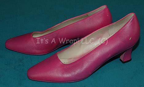 Description: A costume featured in the Star Trek: Voyager episode “Non-Sequitar”; wherein “Harry Kim” (Garrett Wang) wakes up one morning back in San Francisco and had apparently never been assigned to “Voyager”. This costume is a short-sleeved, dark-pink, Lycra dress featuring an irregular hem, sewn in, matching leggings with feet, a zip down the front and corresponding, magenta pumps. This dress was also featured in the wedding scene of Star Trek: Nemesis as worn by one of the guests. A sewn in Deep Space Nine tag reads ‘Audry Baraishyn’, a costumer’s tag reads ‘Jennifer Gatti, Libby, #122’, and a second costumer’s tag reads ‘Dancer, Audrey Baraishyn, Star Trek: Nemesis, Scene 9-10’.