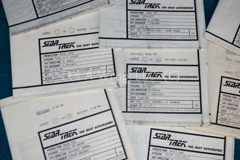 Description: A lot of schematics for sets featured in various episodes of Star Trek: The Next Generation. This lot consists of schematics for the home that “Jayden/Data” (Brent Spiner) stays in “Thine Own Self”, wherein Data (Brent Spiner) suffers amnesia while on an away mission to collect radioactive fragments from a probe that has crash landed on the pre-industrial planet of Barkon IV. A chamber anteroom schematic from “Man of the People”, wherein the “Enterprise-D” takes on an ambassador and “Counselor Troi” (Marina Sirtis) begins acting inexplicably erratic. The gazebo set from “True Q” but is listed as “Q-Me?”, wherein a new intern comes aboard to assist “Dr. Crusher” (Gates McFadden) and “Q” (John DeLancie) appears to inform the crew that she is actually Q. “Sheriff Worf’s” (Michael Dorn) office from “Fistful of Data’s”, wherein “Lieutenant Worf” (Michael Dorn) “Alexander” (Brian Bonsall), and “Deanna Troi” (Marina Sirtis) are stuck in an old west holodeck program where all of the characters look like “Lt. Commander Data” (Brent Spiner). “Holmes” study from “Ship in a Bottle”, wherein the “Moriarty” hologram returns and takes over the ship. The dom-jot table from “Tapestry”, wherein “Captain Picard” (Patrick Stewart) dies on an away mission, meets “Q” (John DeLancie) in the afterlife, is and is given the chance to go back to a crucial time in his past and change something that he thought would make his life better. Some specific Engineering panel detail from “Starship Mine”, wherein a group of terrorists invade a deserted “Enterprise-D” to steal trilithium resin from the warp core but they don’t count on “Captain Picard”(Patrick Stewart) being there. A cavern below the Nervala IV station from “Second Chances”, wherein the “Enterprise-D” crew finds that a unique distortion field created a copy of “Lieutenant Will Riker” (Jonathan Frakes) on a planet that “Commander Riker” helped evacuates eight years before. The weather station from “Sub Rosa” but is labeled as “Del Rosa”, where “Dr. Crusher” (Gates McFadden) finds the entity that had inhabited her grandmother trying to merge with her. The last item is a schematic of the enigmatic “Berlinghoff Rasmussen’s” (Matt Frewer) shuttle from the episode “A Matter of Time”, wherein a time traveler from the 26th century suddenly arrives aboard the “Enterprise-D to witness what he says will be a landmark in history. The items feature information like show name, stage, production number, original date, set name, production and set designer, and scale on a panel in the lower right hand corner.