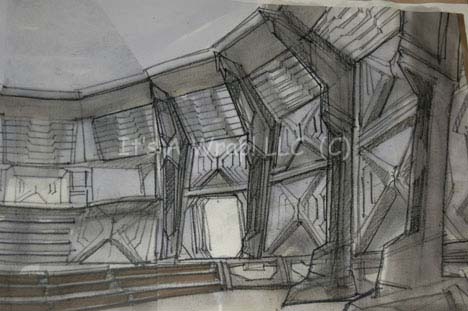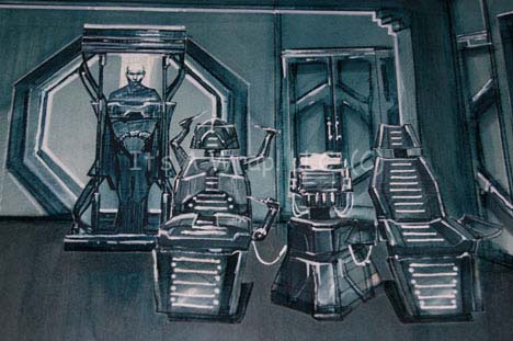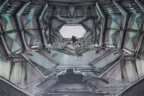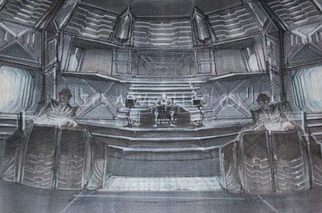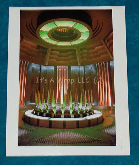 Description: A selection of concept artwork created for Star Trek X: Nemesis some of which is original art and some are photographs. One piece depicts a concept of what may have been the observation deck of the “Scimitar” which is altered compared to the more familiar set where “Shinzon” (Tom Hardy) met the crew of the “USS Enterprise-E” for the first time, face to face; the walls are different and what may be a char is centered in the middle of a round chamber, a figure looms in at the other end in from of an elongated hexagonal frame, this item measures approx. 11 X 17 inches and is a photocopy on paper. Second, a photograph on photo quality paper of the Thalaron radiation generator on the “Scimitar”; the set is lit for the camera as would it would be viewed in the Star Trek reality, this item measures approx. 8.5 X 11 inches. Next, a sketch work of the “Scimitar” bridge complete with Reman crewmen at their stations and Shinzon in his command seat on paper with muted gray marker coloring that bleeds through to the reverse of the sketch further authenticating the item as an original; this item is so detailed as to depict rays of light shining up through deck vents on the sides of the work and is inscribed ‘Bridge – (Nemesis)’ and ‘W. Diaz 2002’, the item measures approx. 12.5 X 29.25 inches. A second item bearing the inscription ‘W. Diaz’ is an amalgamation of several detailed sketched, all color copied and adhered to a backdrop sheet, depicting “Captain Picard” (Patrick Stewart)restrained in the medical bay on the ship, this item is adhered to poster board with unused adhesive placements on the reverse and measures approx. 24.75 X 13.5 inches, the remains of a removed sticker are present in the lower left hand corner. Finally, another depiction of what is believed to be the bridge of the ship, but without any characters or console placements, with a significantly less refined look than the previous, this item is believed to be made up of several 8.5 X 11 inch copies adhered to a larger sheet, then colored, the marker bleeds through to the reverse; this item measures approx. 33.25 X 17 inches and is the most significantly damaged of the items with bent corners, other folds, and creases. A varying degree of damage has occurred with all of the items but the overall aesthetic appeal is clear.