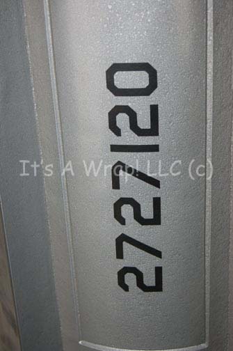 Description: A large one-sided prop was featured in Star Trek: Enterprise as part of the "Enterprise NX-01" armory set. With a flat back, this torpedo fits nicely against a wall or any flat backed surface. Made from fiberglass and mounted on a wood frame then painted metallic silver with aluminum trim, directional fins, and accents, the item measures approx. 100 X 15 X 12 inches and include an adhered serial number.
