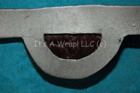Description: A costume accessory appearing in Star Trek feature films and episodic television – a Klingon chest armor center. The item is made to affix to the costume to cover the sternum and is fashioned from composite material that has the rigidity of molded rubber and the appearance of sheet plastic. The face of the item is painted metallic silver with a shiny adhesive reverse. The item features three positions of wire backings for fastening into the costume and a cut out through which an adhered black faux fur accent is visible. The item measures approx. 9.5 X 2.5 inches.
