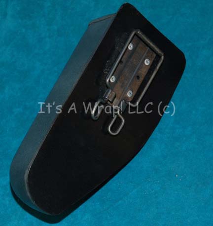 Description: A prop holster featured in the premiere Star Trek: Enterprise episode “Broken Bow” for use by the anti-Cabal faction of the Suliban and their energy pistols. The item is fashioned from gray and black colored vacuum formed plastic with an adhesive foam interior lining for a no scratch effect and features an international military clip on the reverse. The item measures approx. 8.5 X 4 X 3 inches.