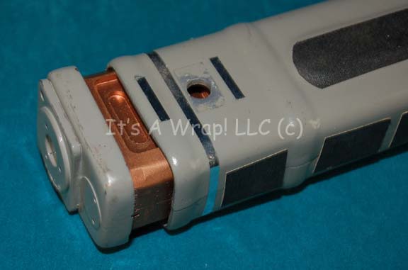 Description: A prop Interphasic Scanner featured in the Star Trek: The Next Generation episode “Phantasms” for use by Gates McFadden in her portrayal of “Dr. Beverly Crusher”. The item is made from molded resin and features untested internal electronics. The item has a button for activating a light in the head, and a switch is present in the wiring. The item is damaged in that the head and internal framework are separated, but kept together by wiring. A set of red and yellow lights are attached for a housing in the head, a molded resin element is separate but accompanying that slides into the grip as added technology. The item measures approx. 12 X 3 X 4.25 inches.