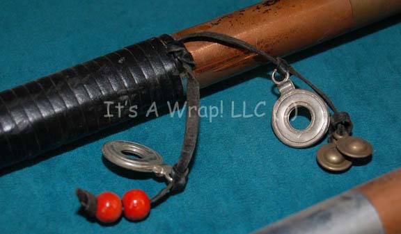 Description: A lot of prop items featured in the second half of the two-part, TNG episode “Birthright”; wherein “Lieutenant Worf” (Michael Dorn) ends up at a Romulan prison camp and finds several Klingon children who know nothing about their heritage. The lot includes two “Qu’vak” spears; just under javelin size, silver, brass, and copper colored spears, with grooves near the tip, a widened, brass-colored base, and black, leather cording wrapped around the handle where the hand would go and decorated with beads and metal rings. These two items are the last of their kind this far located and all have a length of approx. 40 inches and a diameter of approx. 2 at their widest point.