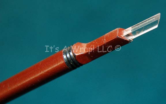 Description: A prop stylus made for use with a PADD (Personal Access Display Device) similar to the one used by “Jake Sisko” (Cirroc Lofton) in the Star Trek: Deep Space Nine episodes “The Visitor” and “The Muse”. The item is a molded resin cylinder with a clear shaped acrylic element mounted onto the front end. The item is painted metallic copper and black and measures approx. 7 X 0.25 inches.