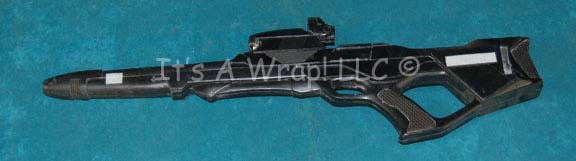 Description: A prop item similar to those featured in the tenth Star Trek feature film “Nemesis”. This item is a black, foam-rubber version of a Type 3 Mark 3 phaser rifle; it has none of the ‘chromed’ or reflective accents, the black, nylon strap, the Surefire flashlight in front of the faux scope, nor any of the other electronics its 'Hero' counterparts contain. The item does maintain the same dimensions of approx. 32.5 x 10.5 x 2 inches.
