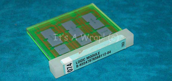 A prop item featured in various episodes of Star Trek: Enterprise. ‘Data modules' like these appeared in virtually every set of the show as set dressing and hand props. The item is a rectangular piece of plastic with a graphical application adhered to it identifying the device as ‘LOGIC MODULE’ … |