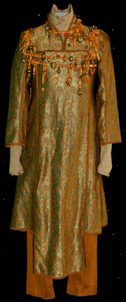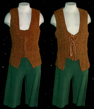 The “Kreetassans” where a humanoid race capable of warp speed and native to the planet Kreetassa. They were featured in several Star Trek: Enterprise episodes however this costume was featured in the episode “Vox Sola”. The costume includes a gold and orange paisley pattern tunic with orange trim and an … |