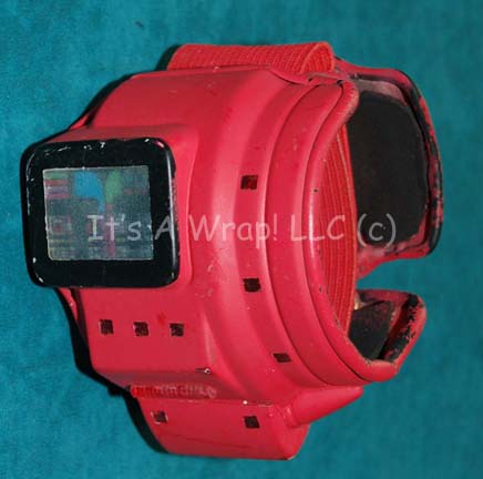 A prop item featured in the ninth Star Trek feature film “Insurrection “. This is an electronic wrist scanner made for wear with the cloaked suit Starfleet used to observe the Bak’u; it is molded plastic, painted red featuring a small, backlit “screen” with a graphical application of “sensor data”, … |