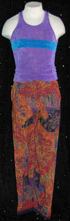 Worn by Alexander Siddig during his portrayal of “Dr. Julian Bashir” in the episode “Let He Who is Without Sin…” of Star Trek: Deep Space Nine, this costume is comprised of floral patterned pants with a waist tie, and a form fitting purple rayon shirt that is separated by a … |