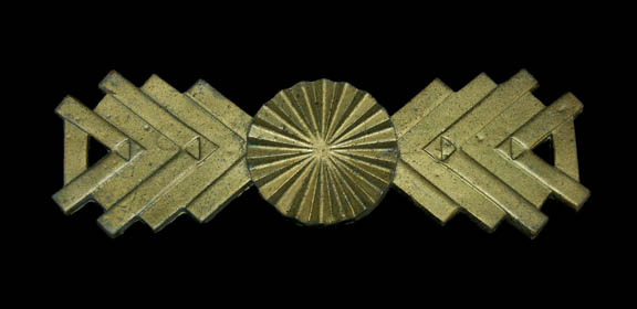 A gold colored cast resin badge with inset metal braces on the reverse like the kind seen on “Worf's” (Michael Dorn) sash in the premier episode of Star Trek: The Next Generation, “Encounter at Farpoint”, and like the one seen on a similar sash worn by “Commander Kang” (Michael Ansara) … |