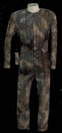 A costume featured in the Star Trek: Enterprise episode “Extinction”, wherein “Captain Archer” (Scott Bakula), “Lt. Reed”(Dominic Keating), and “Ensign Hoshi Sato” (Linda Park) are infected with an alien pathogen that causes them to de-evolve to a more primal state. This costume is for wear by Dominic Keating in the … |
