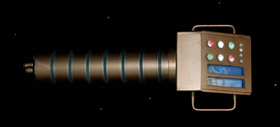 Featured in various episodes of 24th century Star Trek including “Equilibrium” of Star Trek: Deep Space Nine, this resin prop ‘scanner' features a control box with working lights that flash intermittently attached to a cylinder with a row of lights which flash in sequence. Painted metallic copper with two side … |