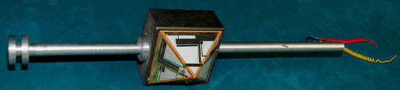 A prop item appearing in the engineering section of the “U.S.S. Defiant” in the Star Trek: Deep Space Nine episode “Starship Down”. The item is a cylindrical container made from machined metal and glass components with embedded lights. The metal cap is attached to a glass container that pulls freely … |