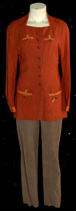 A costume style first appearing in Star Trek II: The Wrath of Kahn and continuing to be in use through the opening sequence of Star Trek: Generations. This costume consists of a long-sleeved, full-length, red jumpsuit featuring a tan yoke, black piping, a red ribbed collar and sleeve cuffs indicating … |