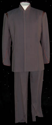 A costume featured in the Star Trek: Deep Space Nine episode “A Man Alone”; wherein “Odo” (Rene Auberjonois) is seemingly the only person who could have murdered a man who was being kept behind closed doors. This costume is for wear by Cirroc Lofton in the role of the son … |