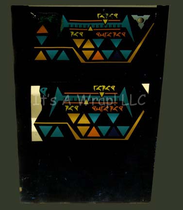 A prop computer interface ‘screen’ like those appearing variously in Star Trek feature films and episodic television. The item is a piece of trapezoid shaped elongated smoked acrylic with a Klingon themed graphical application adhered to the reverse. The graphics are best seen when the item is back lit and … |