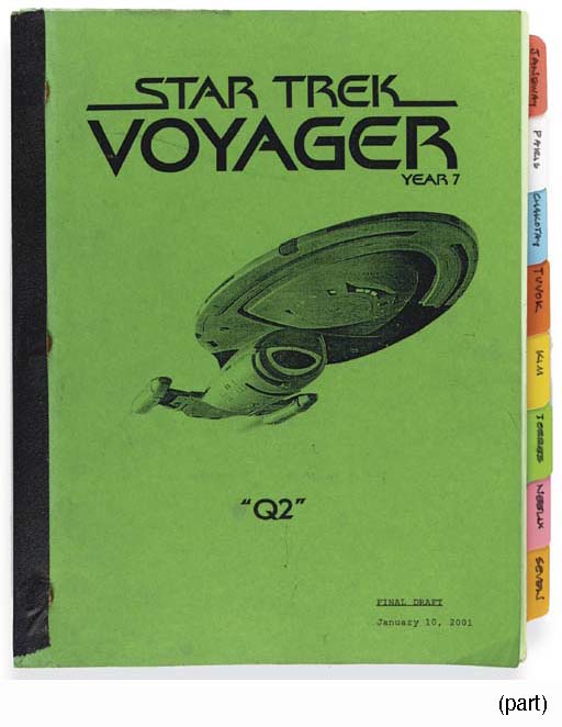 Approximately 170 scripts for all seven seasons of <I>Star Trek: Voyager</I> with extensive costumer's continuity notes, descriptions of characters as they appeared in each scene, often with reference Polaroid photographs of actors in each costume, includes the pilot movie "Caretaker" -- used by on-set costumers to help ensure continuity; accompanied … |