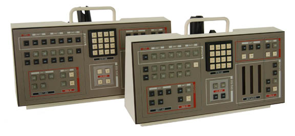 A pair of white sickbay consoles that were part of Dr. Phlox's (John Billingsley) elaborate set dressing. Fastened to rolling carts they acted as an interface to medical information. They both feature a ball joint centered on their back fixed to an elbow and a white metal handle on top. … |