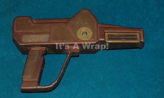 A prop item like those featured in the Star Trek: Deep Space Nine episode “The Circle” for use by members of the titular group in their coup against the Bajoran provisional government. This item is a sturdy resin cast, brown with bronze-colored, raised accents, black detail on the ‘barrel’, evidence … |
