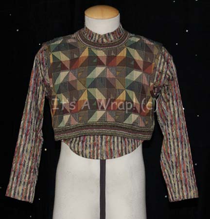 A lot of costume elements featured in various episodes of Star Trek: Deep Space Nine like “Bar Association”. This lot consists of a long-sleeved shirt featuring multi-colored, vertical stripes superimposed on a horizontal wave pattern. A sleeveless shirt in a matching color scheme and featuring a pattern of multi-colored triangles … |