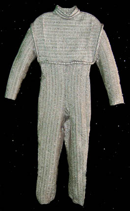 A costume featured in several episodes of Star Trek: Enterprise for wear by the MACOs (Military Assault Command Operations). The costume is a long sleeved duty fatigue jacket of distressed urban camouflage with functioning pockets, zipper up the front, zipper/Velcro cuff adjustments, a sewn in undergarment, corresponding trousers, boots, a … |