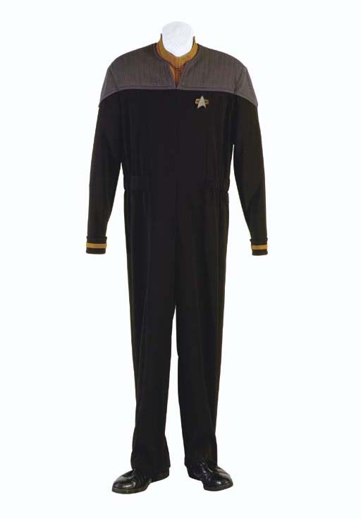 A costume featured in various episodes of Star Trek: Voyager. This Starfleet uniform jumpsuit is for wear by Christine Delgado in the role of “Lieutenant Susan Nicoletti”, it is black with Operations Gold division shoulders that zips up the front, clasps at the top, and features a Velcro patch on … |
