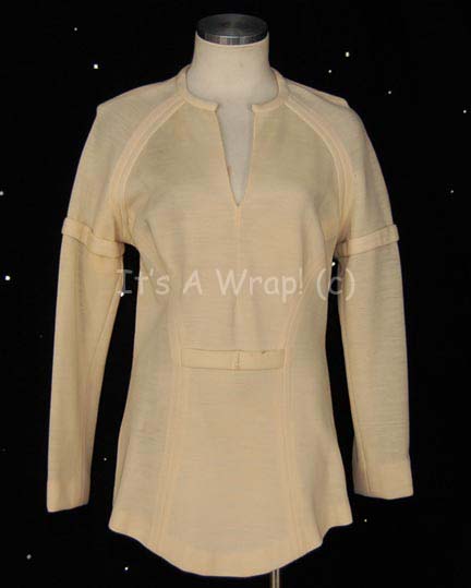 A costume element featured in the first Star Trek feature film. This item is a crème-colored, long-sleeved, Class-B, Starfleet uniform shirt with the following unattached accessories; gold-back Epsilon IX assignment patch, Operations gold shoulder division strips with rank placement that denote the wearer as a ‘petty officer’, and a bio-monitor … |