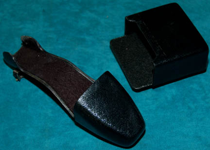 A lot pair of black vacuum formed plastic holsters featured in Star Trek: The Next Generation, Deep Space Nine, or Voyager. The items both have two metal slide clasps on their reverse for attaching to gear loops sewn in to costumes, and black felt interior lining for no scratch protection … |