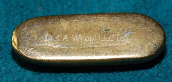 A double pin rank backing created for use on Starfleet costume uniforms in Star Trek episodic television and feature films. The item is gold colored metal with a soft, rounded base from which protrudes two pins that punch through collar fabric to be inserted into a rank pip. For auction … |