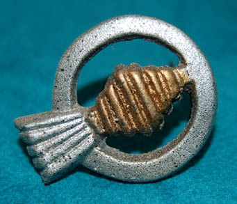 A molded resin rank accent for costumes appearing in various Star Trek feature films. The item is a small circle painted metallic silver and a gold painted diamond center piece. The item features metal wire glued to the reverse for attachment to a costume division strip and rank placements and … |