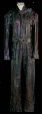 The ‘Tarlac' were a primitive race that appeared in the Star Trek: Insurrection feature film as the indentured servants to the more powerful ‘Son’a’. This jumpsuit was worn by a Tarlac officer serving on board the Son’a “Ru’afo’s” (F. Murray Abraham) flagship. Made of purple velvet, the jumpsuit has black … |