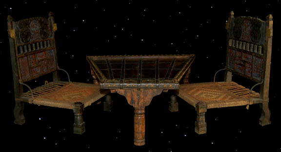 A prop table and two chairs featured in the Star Trek: Enterprise episode “Desert Crossing”; wherein “Captain Archer” (Scott Bakula) and “Commander Tucker” (Connor Trinneer) are lured down to a desert-like planet by someone whom they had helped but find that they must escape across the desert to get back … |