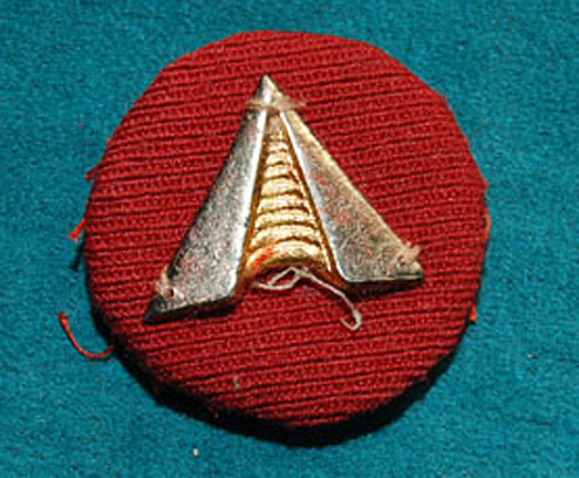 A metal rank badge made for characters portraying an ensign in various Star Trek feature films. The item is made from metal to appear as a downward pointing metallic silver colored triangle with a beveled triangle in the center, painted metallic gold with etched lines. The item is sewn onto … |
