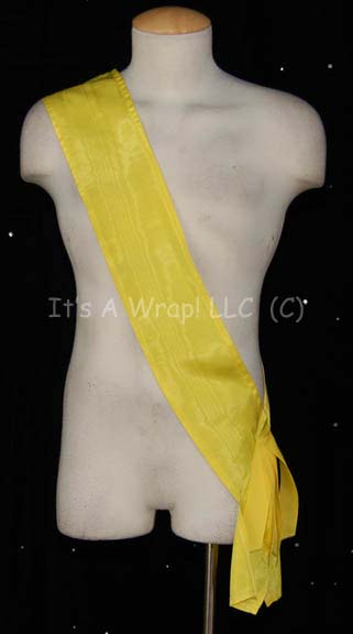 A yellow nylon sash worn by Vulcan delegates at the Khitomer Conference in Star Trek VI: The Undiscovered Country. Seen on background Vulcan attendees this sash is worn from the right shoulder down across the body to the left side where it exhibits a quartet of ribbons cut in various … |