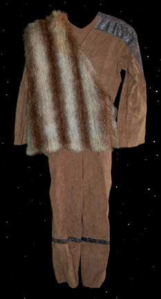 A costume featured in the Star Trek: The Next Generation episode “The Outcast”, wherein “Commader Riker” (Jonathan Frakes) falls in love with a member of a species called the “J'Naii” which does not recognize genders. This costume is a long-sleeved, full-length, brown suede jumpsuit with tan piping, wraps on either … |