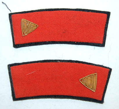 A pair of red engineering division-rank strips featured on Starfleet uniforms in Star Trek I: The Motion Picture. The item is red fabric on a black felt board with a gold thread triangle on one end indicating the wearer to be a ‘petty officer'. This style of accent would have … |