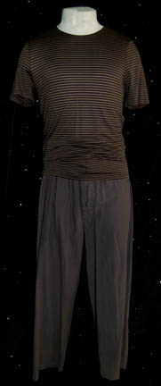 A costume featured in the Star Trek: Voyager episode “Alice”; wherein “Tom Paris” (Robert Duncan McNeill) rescues a ‘haunted’ shuttle with a neurogenic interface that slowly begins to take over his mind. This costume consists of s a sleeveless, gray undershirt in a stretchy, spandex-like material, a long-sleeved, full-length, metallic … |